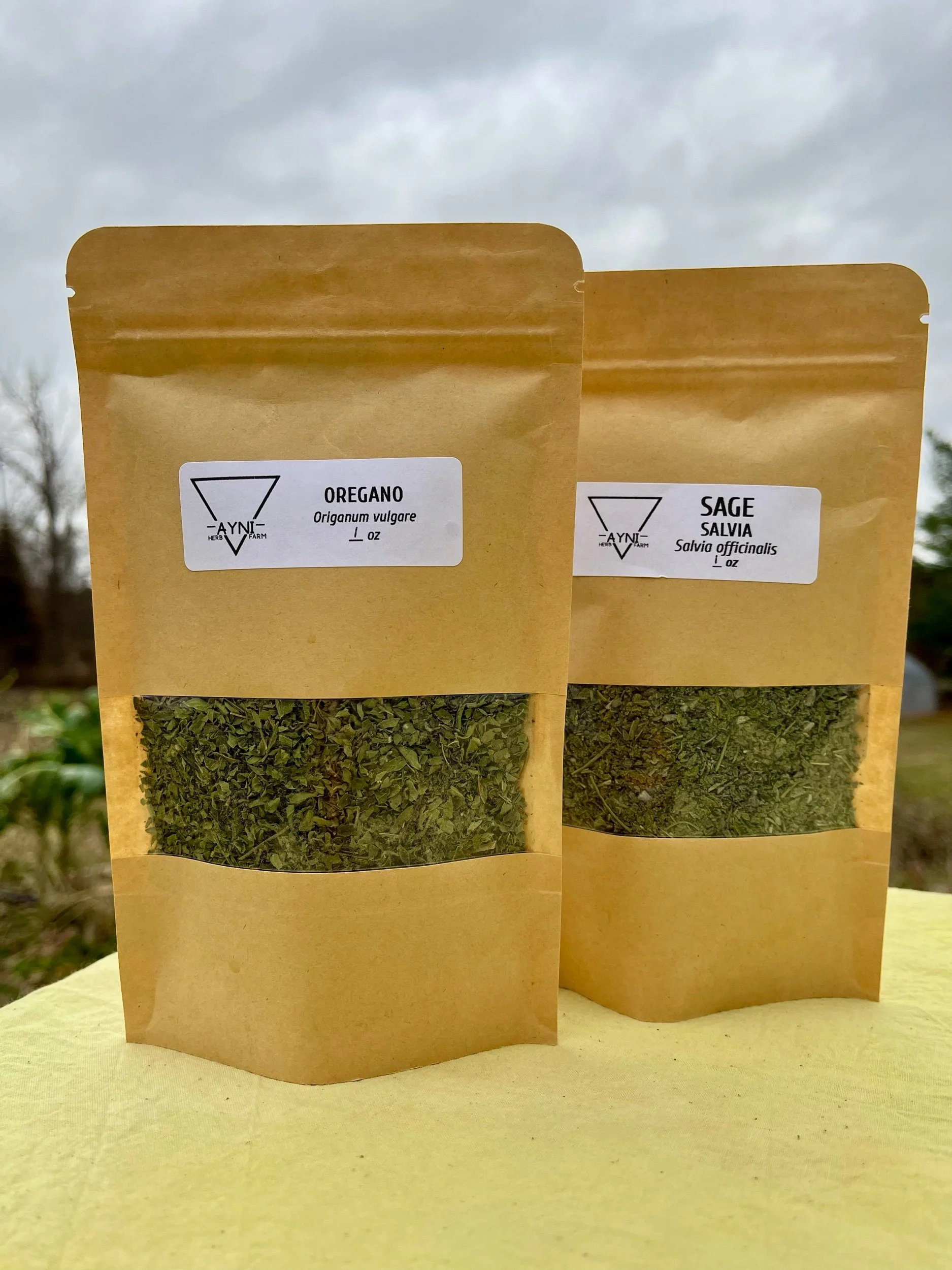The Food is Medicine Combo includes 1oz bags of dried sage and oregano